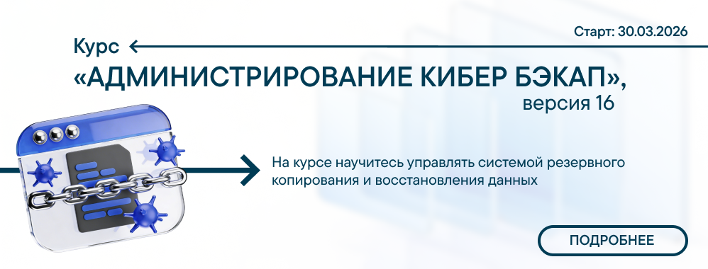 Хотите уверенно управлять системой резервного копирования и восстановления данных? Представляем вам курс «Администрирование Кибер Бэкап» версия 16